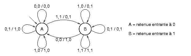 La première sortie est le bit de résultat de l'addition des deux entrées. La seconde sortie est le bit de retenue.