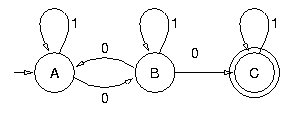 A = 0A + 1B + epsilon B = 0C + 1B C = 0A + 1B